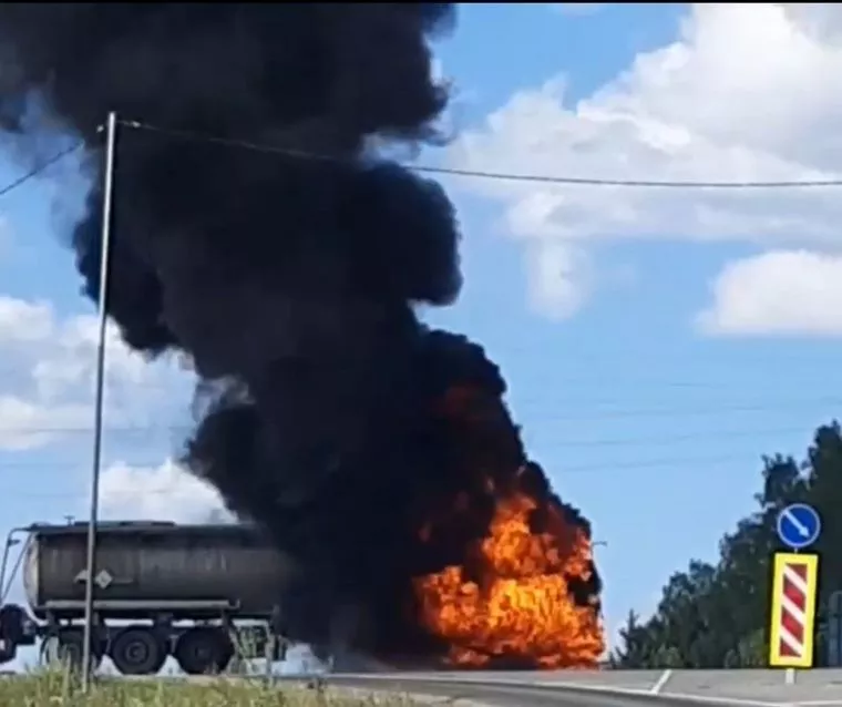 В Челябинской области загорелся бензовоз