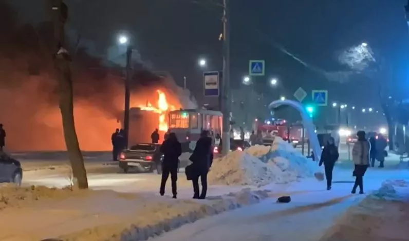 В Магнитогорске сгорели два трамвая. Видео