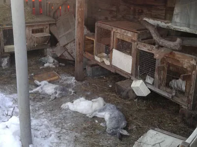 Вечером следующего за «закалыванием» свиньи дня Ольга Вениаминовна пошла кормить кроликов и только тогда увидела страшную картину. В заборе-сетке вольера дыра, клетки опрокинуты и открыты, все четыре самки лежат на земле задушенные, а самец лежит прямо в клетке. Она, кстати, была лишь сдвинута с места, но крышка, прикрученная саморезами (!), буквально выдрана. В огороде же, еще покрытом снегом, ночной гость оставил следы. Они показались весьма странными – очень мощная, почему-то трехпалая (возможно, четвертый палец просто не отпечатался) ступня четко обозначилась на осевшем снежном насте. Таинственный вампир покинул усадьбу, перемахнув через забор.