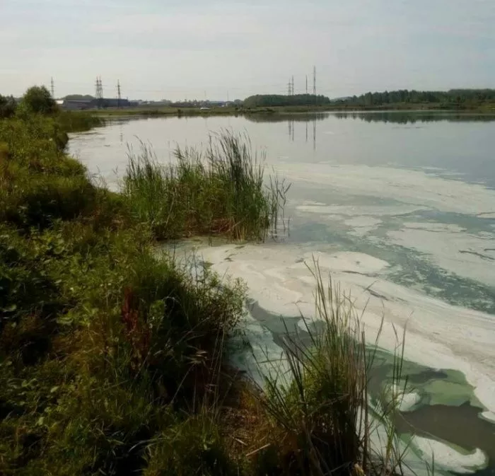 Снимками, где на поверхности воды четко видна зеленоватая пленка, местные жители делятся в соцсетях.