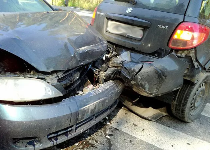 Две иномарки - «Сузуки» и «Шевроле» - остановились перед пешеходным переходом, пропуская людей, когда в автомобили врезался автобус, который среагировал на пешеходов не столь оперативно, как водители легковушек.