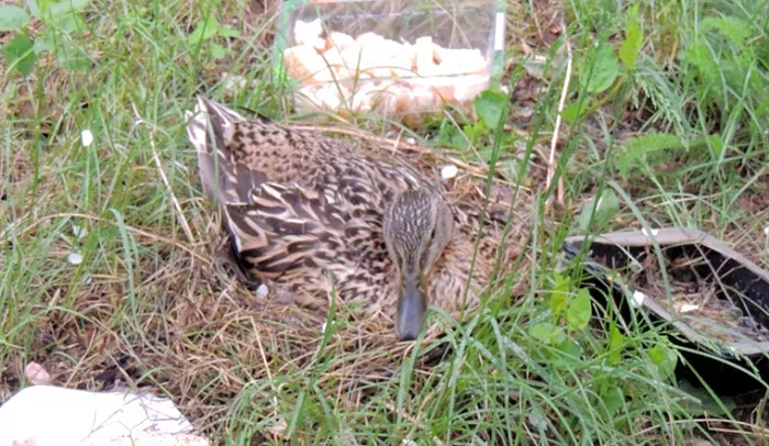 Челябинцев удивила утка, которая в центре города высиживает яйца. Видео