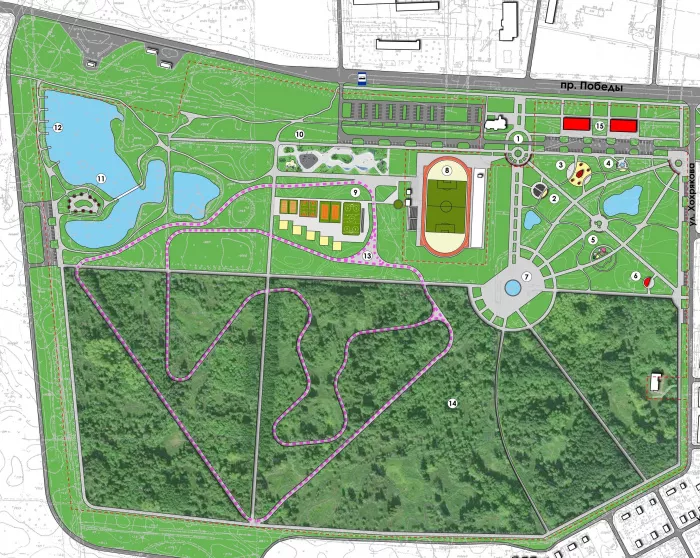 А пока мы можем увидеть проект, что именно расположится в новом парке.