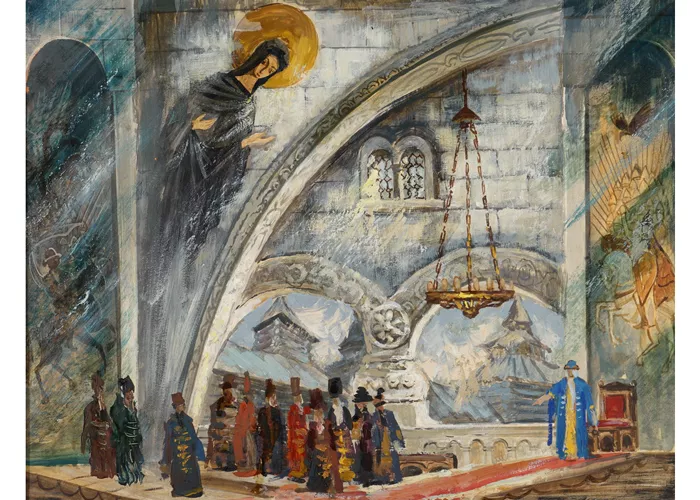 Эскиз декораций к опере «Князь Игорь». Картина «У Ярославны». 1985. Картон, масло, лак