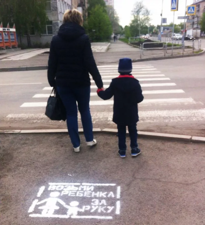 Отдел по делам молодежи администрации Копейского городского округа, совместно с ГИБДД Отдела МВД России по городу Копейску накануне Дня защиты детей провели социальную акцию, суть которой состояла в нанесении на тротуарах перед пешеходными переходами призыва о соблюдении правил дорожного движения пешеходами. Ребята использовали трафарет, который изготовили сами. Надписи «Возьми ребенка за руку!» были нанесены белой краской на асфальте перед нерегулируемыми пешеходными переходами в центре города на ул. Ленина, ул. Борьбы, не случайно, ведь 1 июня на площади Красных Партизан состоится общегородской детский праздник, на который придет много детей и взрослых.