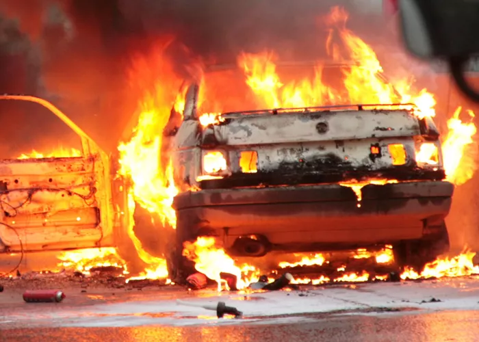 Иномарка посреди дороги вспыхнула огнем. Внутри были женщина с ребенком