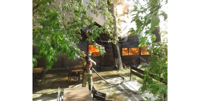 Сначала загорелся тополиный пух, которого вчера на улицах города было предостаточно, а затем огонь перекинулся на летнее кафе.
