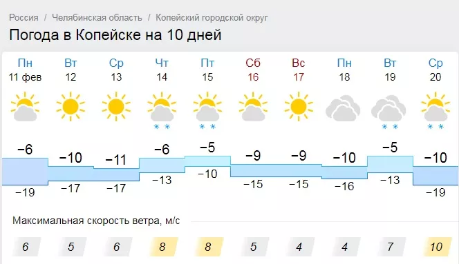 Согласно прогнозу погоды с сайта Гисметео в Копейске ожидается теплая и малоснежная неделя. Температура воздуха после минувших 30-градусных морозов поднимется днем до комфортных 5-10 градусов мороза, в ночные часы лишь изредка опускаясь до 17-19.