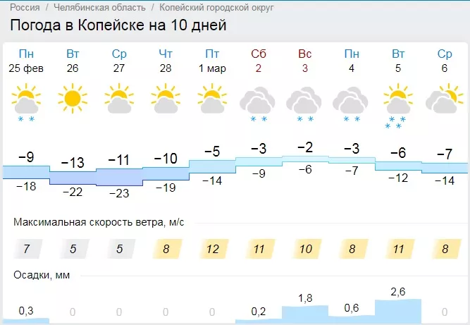 К среде жителей Копейска ждут ночные морозы до 23 градусов по Цельсию, дневные температуры будут колебаться от -9 до -13 градусов.