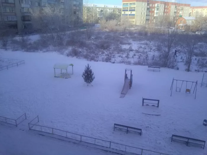 Сегодня, 25 декабря, во дворе у дома №23 по улице Жданова появилась елочка. Несмотря на сильный мороз, заботливые горожане надежно установили ее в центре детской площадки и укрепили слежавшимся снегом.