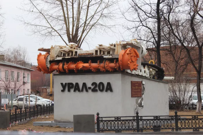 С постамента исчез проходческо-очистной комбайн "Урал-20А", который долгие годы украшал площадь перед проходной завода. Он был установлен здесь не случайно. Это основной и самый востребованный тип комбайна для горнохимической промышленности, а именно для добычи соли.