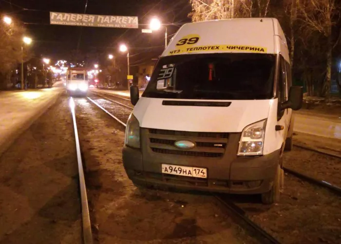 Маршрутка без водителя преградила трамвайные пути в Челябинске