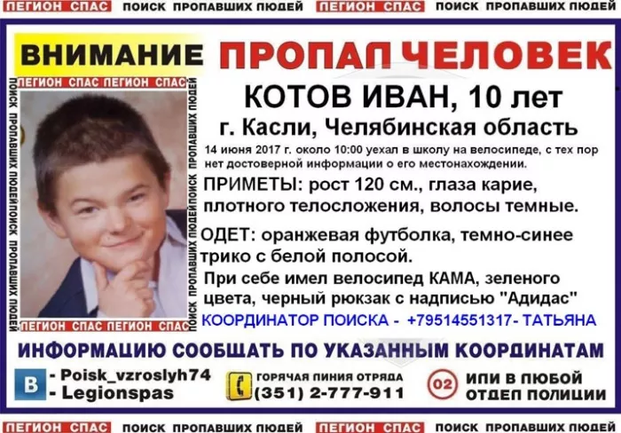 Неделю продолжаются поиски десятилетнего мальчика Вани К., пропавшего в городе Касли Челябинской области, но пока безуспешно.