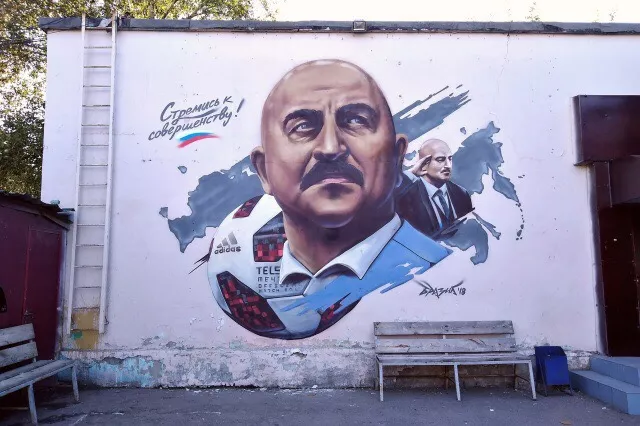 Главного тренера сборной России по футболу нарисовал художник-граффитист Тимур Абдуллаев.