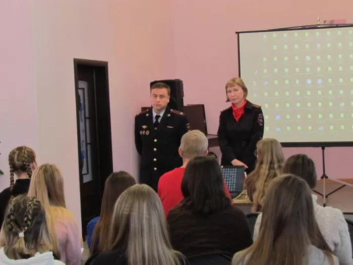Помощник начальника Отдела МВД России (по работе с личным составом) подполковник внутренней Дмитрий Анатольевич Лукшин рассказал учащимся о службе в органах внутренних дел, обратил их внимание на порядок поступления и требования, предъявляемые к поступающим в ВУЗы МВД России, более подробно остановился на условиях получения высшего юридического образования и дальнейшего трудоустройства.