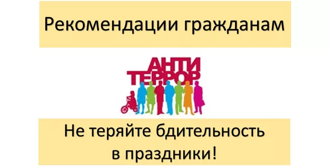 Советуем прочитать памятку о поведении при акте терроризма, обнаружении подозрительного предмета, а также рекомендации гражданам при посещении массовых мероприятий (ссылки на сайт администрации города Копейска).