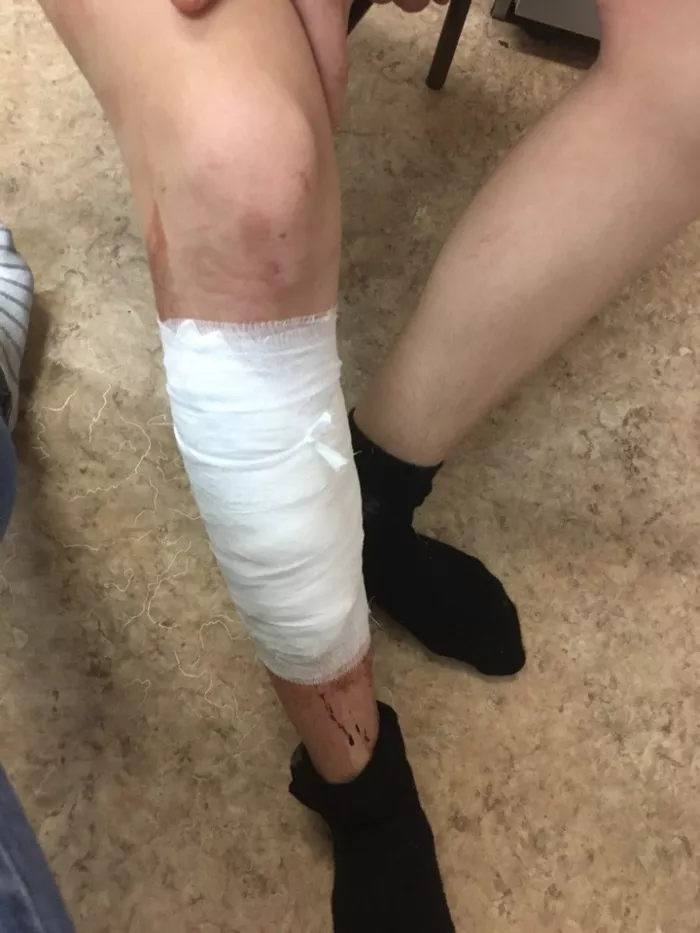 - Дали жгут и бинты, - уточнила мама. - Мы и тому были рады — хоть кровь остановили. Рана не резаная, а рваная и вся кривая, поэтому сыну наложили больше 10 швов.