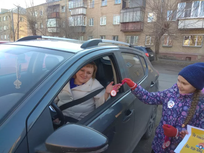Ребята раздавали копейским водителям подвески в виде дорожных знаков, ограничивающих скорость, изготовленные собственными руками. А также листовки на тему необходимости соблюдать скоростной режим.