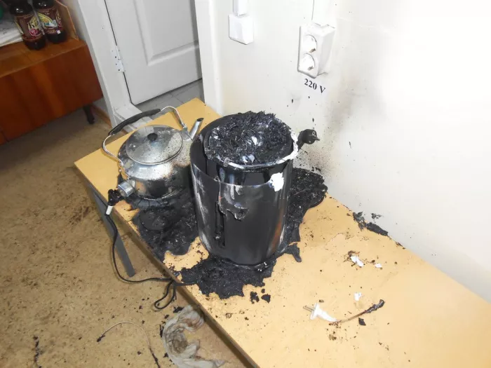 Пожар начался в 3-комнатной квартире на улице Грибоедова в Челябинске. 9-летний мальчик собирался утром в школу и увидел, что на кухне загорелся электрочайник. Он не испугался, а потушил электроприбор тряпкой, правда, бросил ее на диван. Она начала тлеть, а потом и сам диван задымился.
