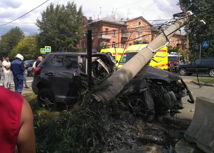 В Челябинской области в результате ДТП иномарка снесла столб и светофор
