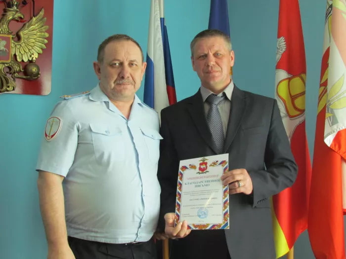 В Отделе МВД России по городу Копейску в торжественной обстановке временно исполняющий обязанности начальника Отдела МВД России по городу Копейску подполковник внутренней службы Михаил Александрович Флейтенг вручил заместителю руководителя координирующего штаба народных дружин в Копейском городском округе Сергею Никандровичу Комарову и командиру добровольной народной дружины «Содействие» Андрею Юрьевичу Пастухову Благодарственные письма от начальника ГУ МВД России по Челябинской области генерал-лейтенанта полиции Андрея Федоровича Сергеева за взаимодействие и активное участие в обеспечении охраны общественного порядка совместно с сотрудниками полиции.