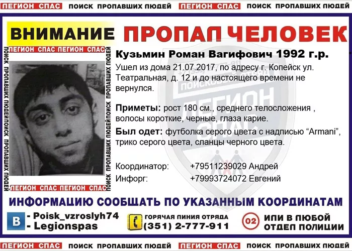 В группе «Легион-СПАС» - Поиск пропавших людей (74 рег)» в социальной сети появился пост о розыске молодого парня из Копейска.