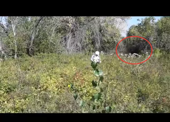 Валерий и Ольга снимали свое небольшое путешествие на видео при помощи телефона. Каково же было их удивление, когда при монтаже ролика они заметили на заднем плане огромное темное пятно, которое двигалось, словно топталось на месте, и отчетливо смотрело на сборщиков шиповника черными яминами-глазами!