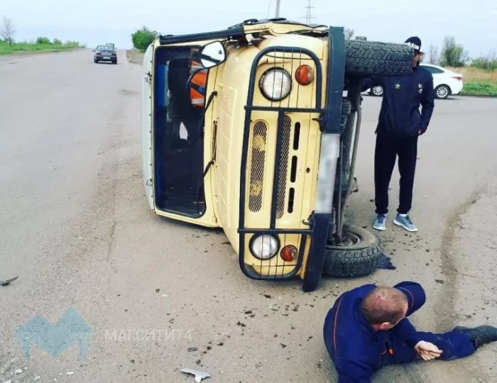 ДТП произошло в Магнитогорске вчера, 16 мая. Отечественная десятка двигалась по главной, а Шевроле Лачетти не уступил ей дорогу при повороте налево. В итоге машины врезались друг в друга и ВАЗ влетел в УАЗик. От удара 33-летний водитель УАЗа оказался на земле, его автомобиль перевернулся. Его осмотрели врачи скорой помощи и забрали в больницу.
