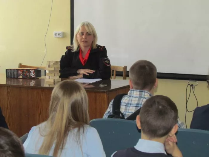 В преддверии летних каникул, когда школьники будут больше времени проводить на свежем воздухе без родительского контроля, юрисконсульт правового направления капитан внутренней службы Олеся Васильевна Баринова напомнила ребятам правила собственной безопасности несовершеннолетних и правила поведения в общественных местах. Кроме этого, она напомнила ребятам об ответственности за курение и распитие спиртного в общественном месте. Во время беседы особо разбирались ситуации, когда необходимо обратиться в экстренные службы города, а также об ответственности за ложное сообщение о заложенном взрывном устройстве.