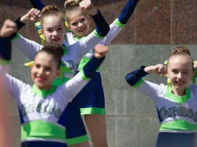 Творческий подарок для всех ребят подготовили федерация черлидинга города Копейска и школа современного танца «Феникс».