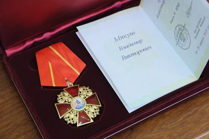 Орден Александра Невского был торжественно вручен председателю регионального ЗСО за вклад в развитие парламентаризма, активную законотворческую деятельность и многолетнюю добросовестную работу Владимиру Мякушу. Соответствующий указ об этом был подписан президентом страны Владимиром Путиным.