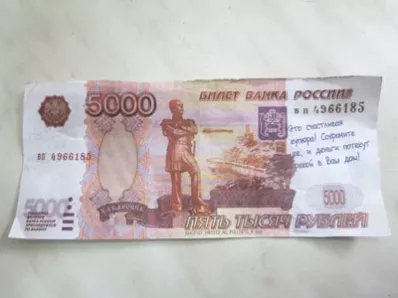 На следующий день в магазин обратился житель одного из поселков Копейска со словами извинения, сказав, что у него не было умысла на сбыт фальшивой денежной купюры. Оказалось, что жена попросила его кое-что приобрести в магазине, оставив ему свой кошелек с деньгами. Мужчина и расплатился найденной в кошельке купюрой. Вечером, обнаружив в кошельке «лишние» деньги, женщина поинтересовалась у мужа, чем он расплачивался. Оказалось, что по почте она получила конверт с рекламной акцией, в котором лежала копия пятитысячной купюры, на которой было написано: «Это счастливая купюра! Сохраните ее, и деньги потекут к вам рекой». Поэтому она и положила купюру в кошелек. Узнав, что расплатился в магазине фальшивкой, мужчина утром приехал в магазин и вернул деньги.