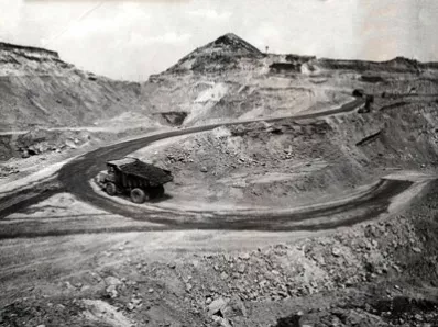 Посмотрите: на этом снимке запечатлена добыча угля открытым способом на участке №1 разреза «Копейский». По наклонной витой дороге ползут груженые карьерные самосвалы. О растительности нет и речи — она плохо уживается с промышленностью.