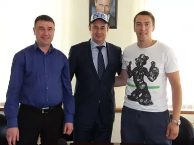 Обладатель Кубка Гагарина на память подарил Вячеславу Истомину фирменную бейсболку клуба «СКА».