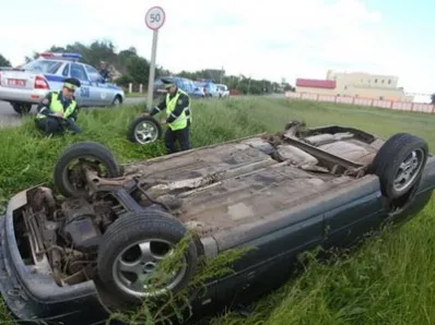 В результате страшной аварии водитель в опрокинувшемся автомобиле от полученных травм скончался на месте.