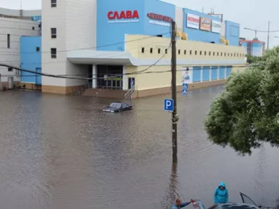 Обильные осадки в виде дождя спровоцировали подтопление некоторых участков дорог. Так, в центре Копейска около ТРК «Слава» образовалось «море». Оборудованная площадка под стоянку ушла под воду. В водной ловушке оказалась машина «Волга». Оказалась подтопленной и детская площадка.