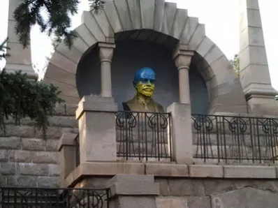 Памятник Ленину опять раскрасили в цвета флага Украины