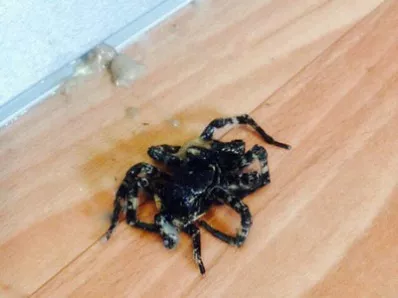 «вот такая фигня размером примерно 5 см выползла из-под холодильника. от куда взялся не пойму( соседи не держат. Боюсь ужасно теперь» (орфография и пунктуация автора сохранены). К тексту приложено фото, на котором изображено насекомое, очень напоминающее тарантула.