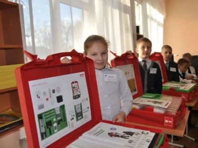 - Мы закупили более 20 различных переносных чемоданов-лабораторий, - пояснила заместитель директора по учебно-воспитательной работе школы № 42 Наталья Хотиненкова. – В каждом чемодане есть 15 комплектов специального оборудования и инструментов, что дает возможность работать со всем классом. На уроках предмета «Окружающий мира». Для работы в группах у нас закуплены конструкторы ТИКО, которые позволяют собирать объемные фигуры: шары, прямоугольники и д.т. Такие конструкторы помогают изучать геометрию, грамматику, арифметику, выкладывать орнаменты и собирать развертки объемных фигур.