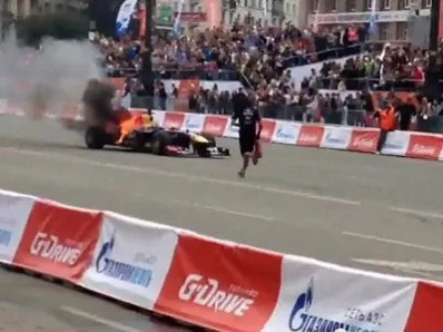 Правда, этот самый болид неожиданно загорелся во время шоу, прямо на площади Революции. Это произошло во время показательного заезда. Пилот не сразу заметил пламя – он успел проехать порядка 200 метров в автомобиле, объятом огнем. Почти сразу к болиду подбежали члены команды Infiniti red bull racing, которые потушили огонь и помогли пилоту выбраться. Британский гонщик Алекс Линн не пострадал, - сообщают СМИ. И уже через 30 минут он выехал на трассу на другом болиде, специально подготовленном для шоу.