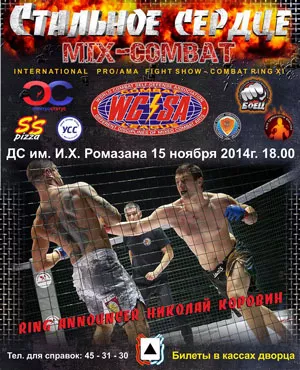 15 ноября во дворце спорта им. И.Х. Ромазана в Магнитогорске пройдет Международный турнир по MIX-COMBAT - INTERNATIONALPRO/AMAFIGHTSHOWCOMBATRINGXI«СТАЛЬНОЕ СЕРДЦЕ».