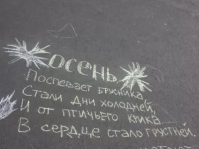 В четверг молодые библиотекари Копейска написали на асфальте возле торгового комплекса "Слава" несколько стихотворений.