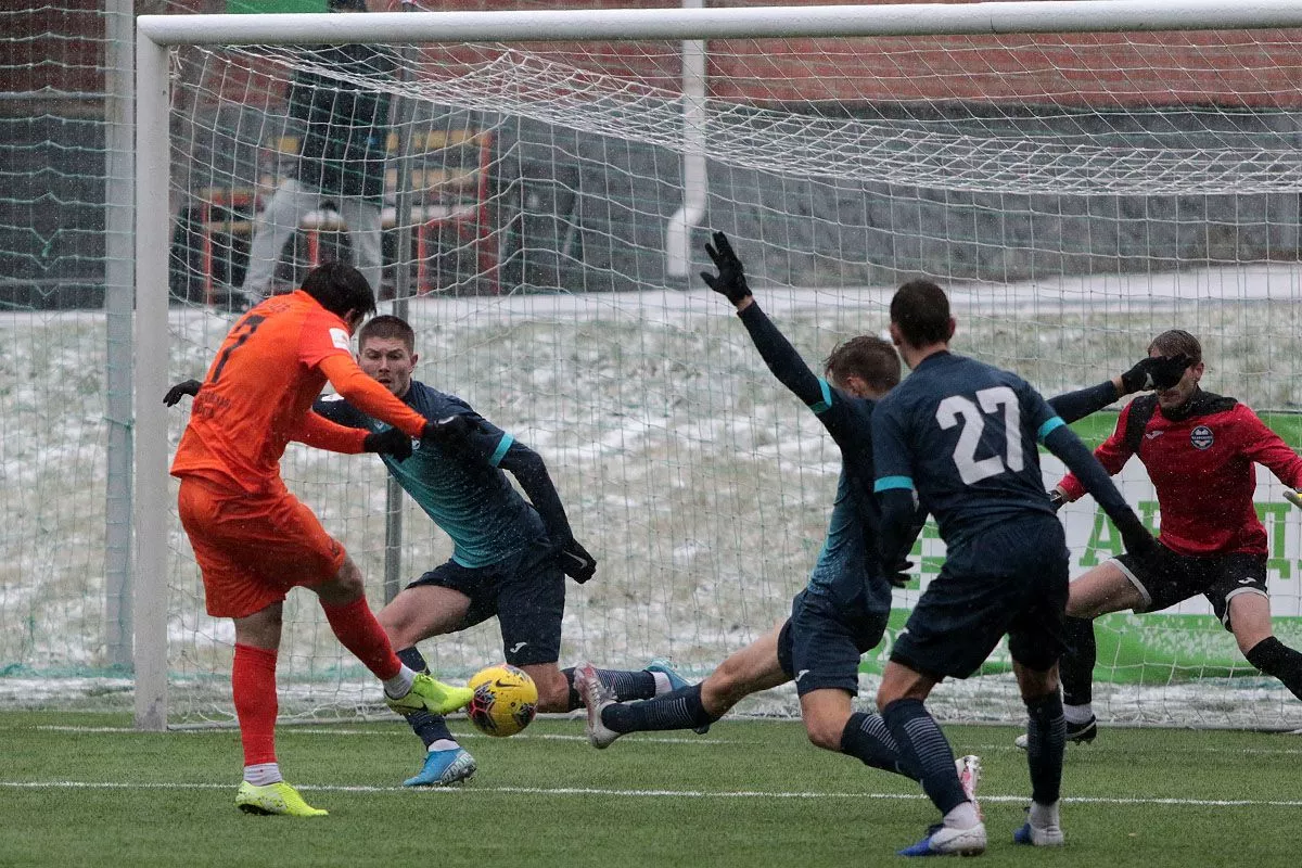 Судьбу матча решил единственный гол в самой концовке. Капитан команды Виктор Курышев с левого фланга сделал подачу в штрафную, а Никита Зырянов, несмотря на буквально висящего на его плечах защитника хозяев, голой переправил мяч в ворота.