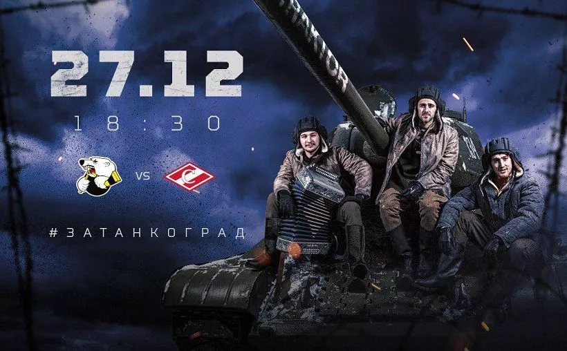 27 декабря на матче «Трактор» – «Спартак» кроме жаркого ледового поединка болельщиков ждет очень насыщенная программа: экспозиция образцов военной техники, премьера видеоролика «За Танкоград!» с хоккеистами в главных ролях, проекционное шоу на льду, первый в КХЛ каскадерский трюк талисмана Медведя и праздничный торт!