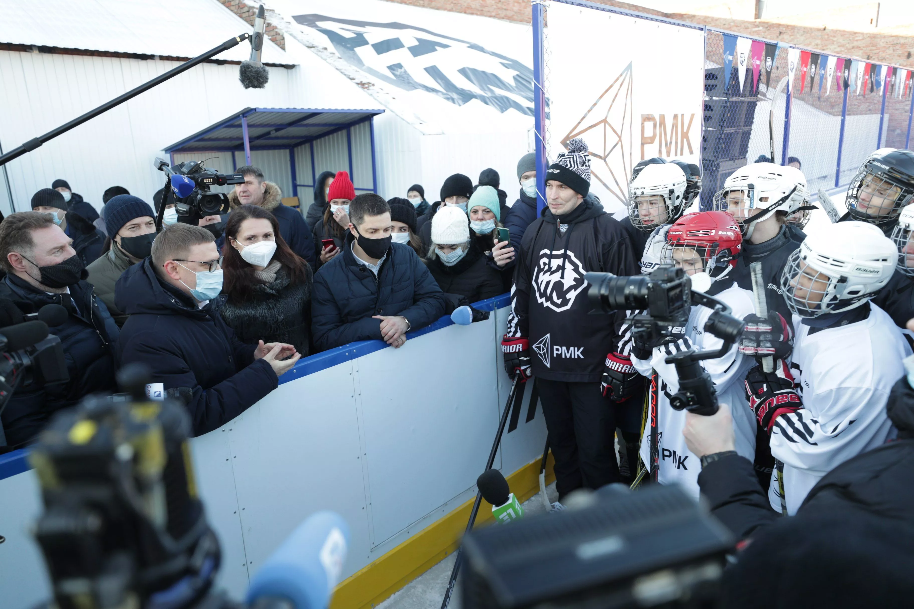Глава региона посетил новый хоккейный корт под открытым небом.