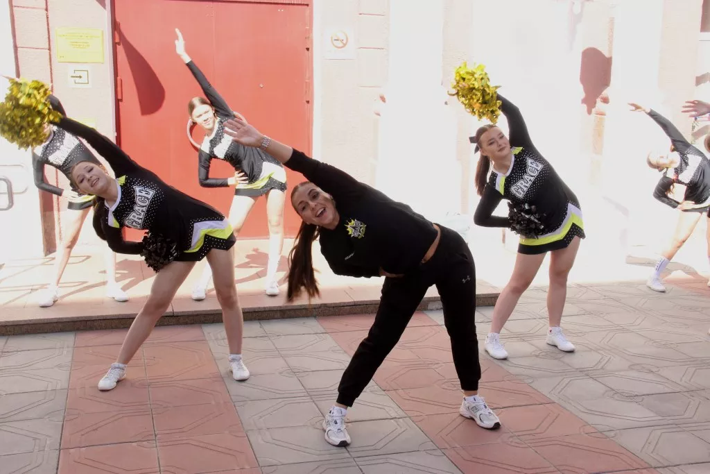 Провести зарядку в этом году доверили Полине Шингарёвой, руководителю спортивного клуба по чирспорту «Грейс». Перед зарядкой её воспитанницы под бурные овации детворы показали сложнейшие упражнения. Ну а затем в течение 15 минут все участники мероприятия дружно выполняли вместе с чемпионом физические упражнения на гибкость, выносливость и силу.