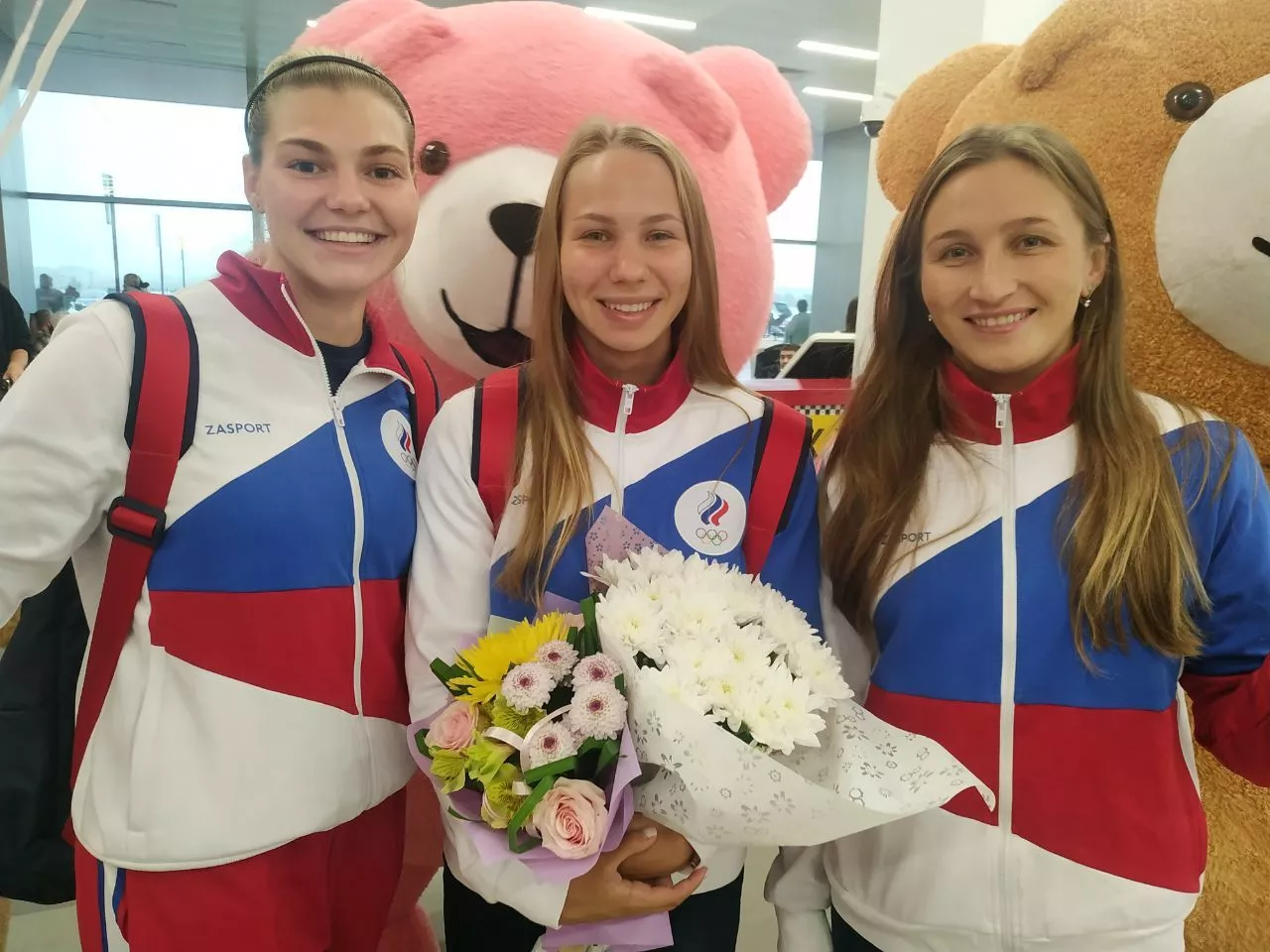 После приветствий и объятий спортсменки пообщались с прессой.