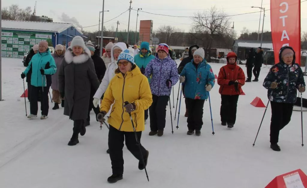 Первой на финиш пришла Ольга Шаврина, ветеран завода имени Кирова. Она страстный поклонник Здорового образа жизни (ЗОЖ). Со школы постоянно ходит на лыжах, а последние 10 лет с удовольствием занимается скандинавской ходьбой.