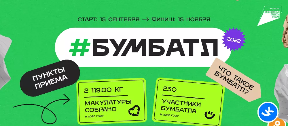 В Бумбатле определят восемь победителей - три рекорда по объему сбора макулатуры и пять за самые креативные посты в соцсетях. Финалисты лично встретятся с известными гимнастками Ариной и Диной Авериными и певцом Хабибом.