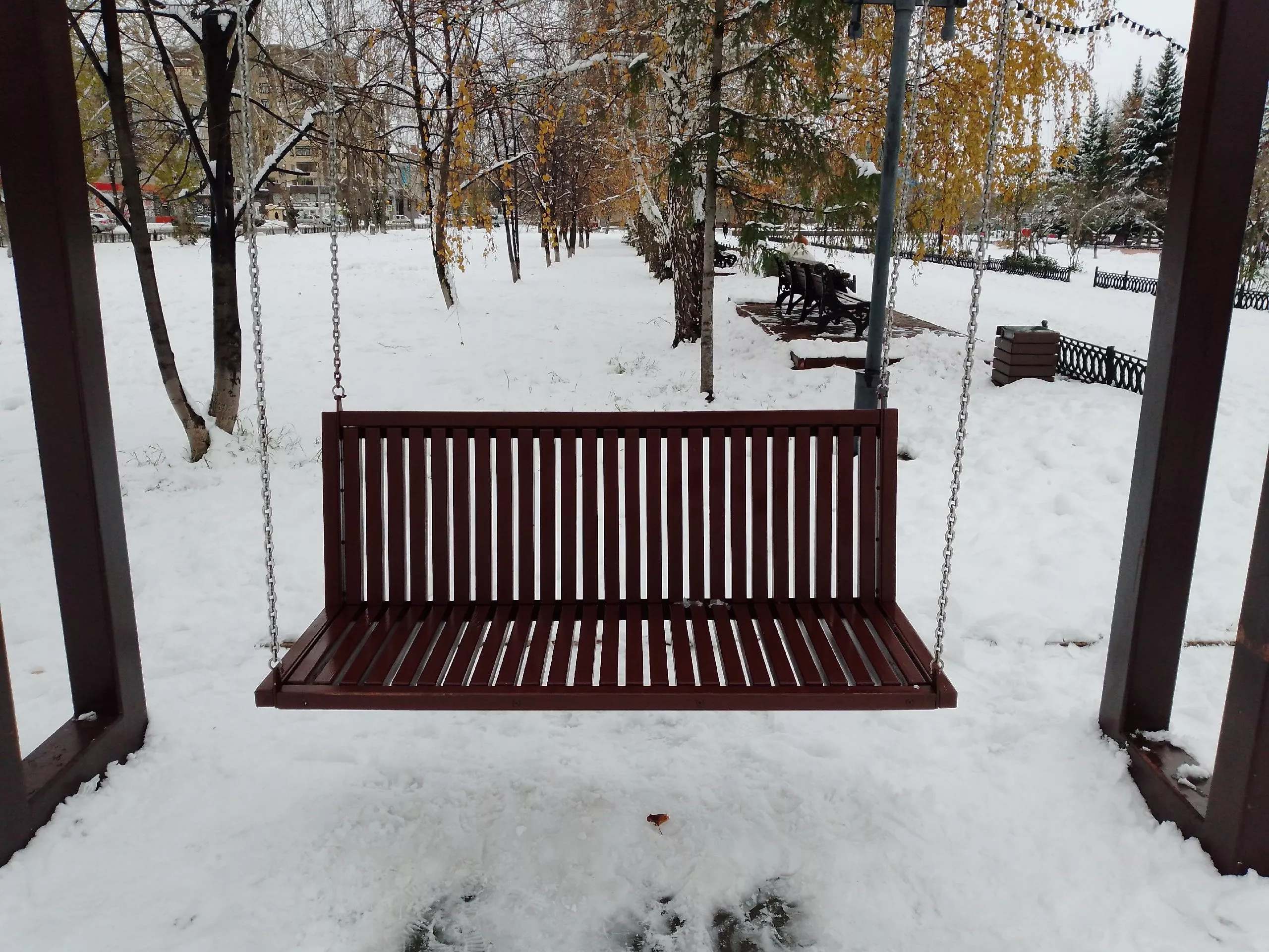 Восстановлены качели на площади Трудовой Славы.